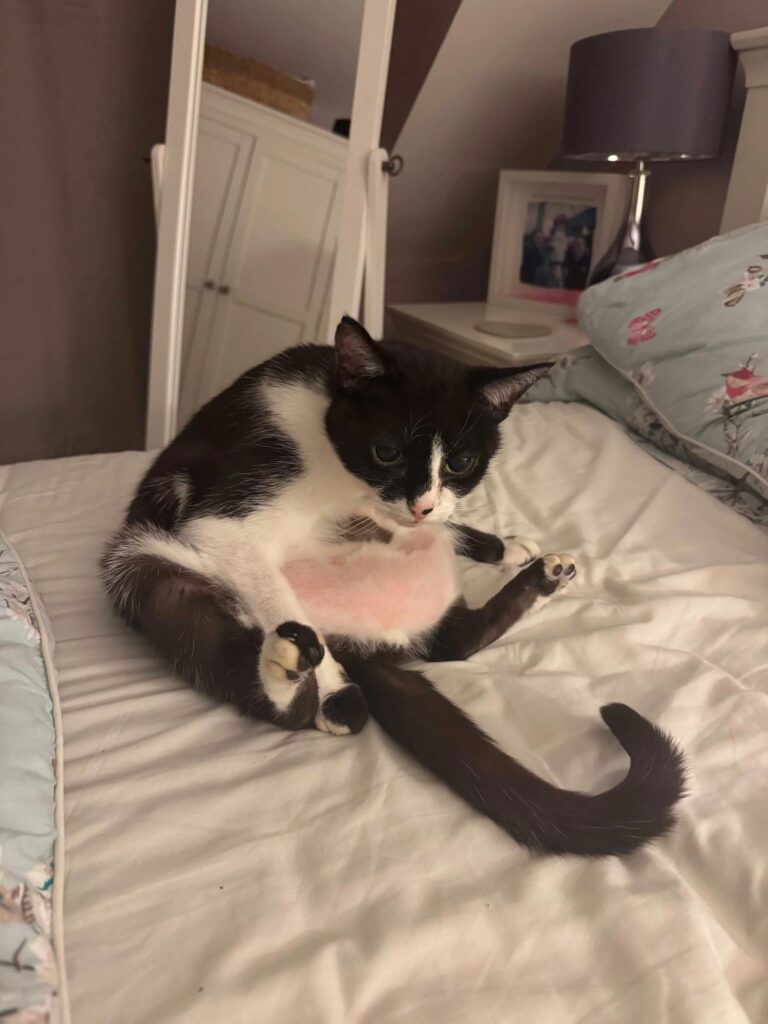 對於確診心因性過度舔舐的貓,行為改善通常需要 4–8 週才見效。別指望主子明天就好,貓咪的時間表一向由他本貓自己說了算。