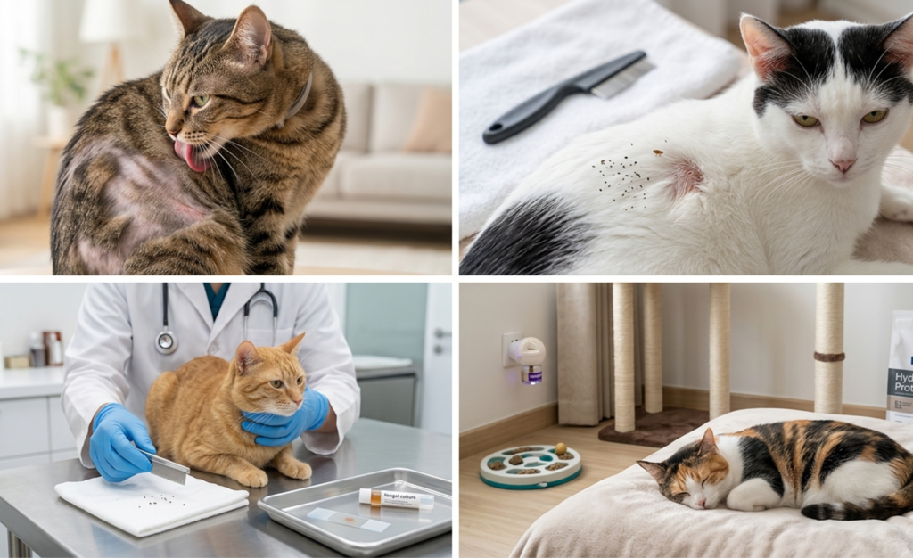 造成過度舔舐的原因繁多,其中大多數都屬於 貓咪皮膚病 的範疇,需要透過專業診斷來鑑別: